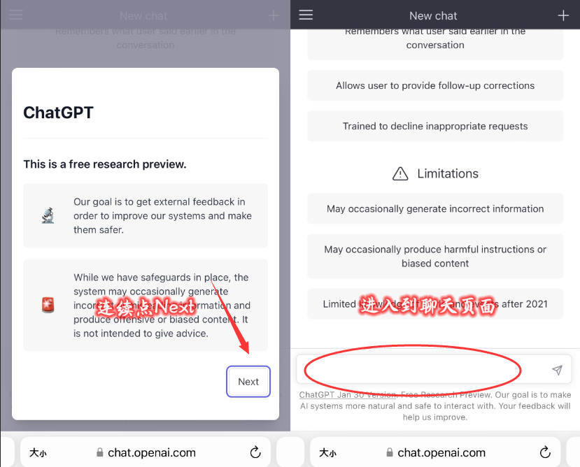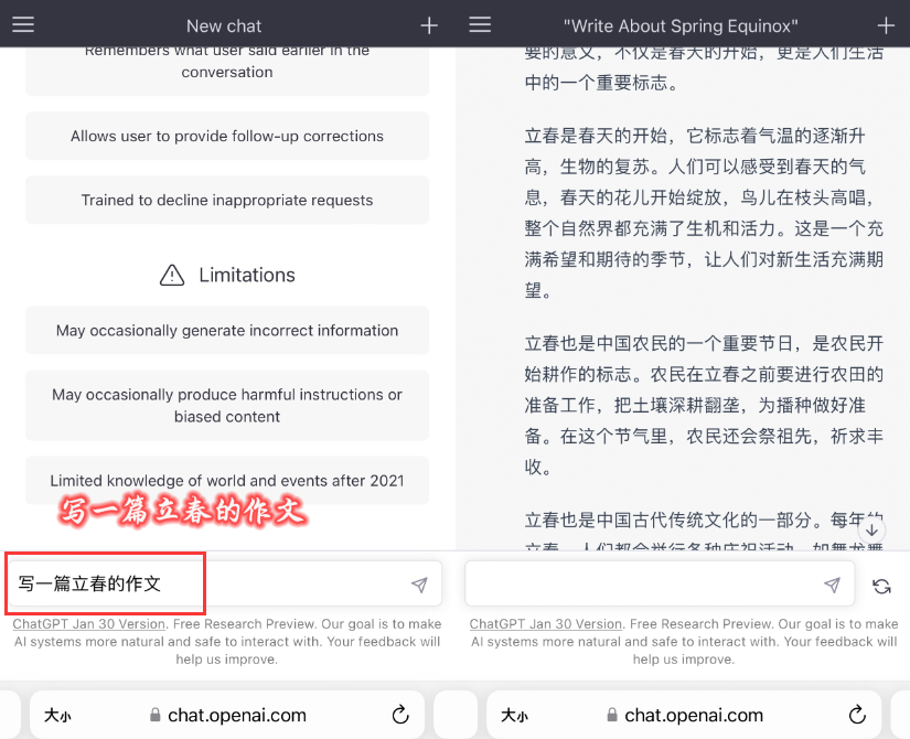 ## 阅前须知 ### ⭕️先看简介⭕️ ### Chat GPT对线路要求非常高,需要购买本平台节点后才可以使用,使用其他平台节点无法打开ChatGPT,请连接 chat的节点线路! <div class="mrdoc-fragment" data-fragid=1>[片段]虎娃官网</div> ### ==Chat GPT账号自备!== > 注意:需开启本平台节点后才能访问 (使用其他平台节点无法访问) ## 一、⭕️登录OpenAI账号 ### 使用方法(1)智能聊天 ChatGPT ### 1、打开下面的网址到浏览器用无痕模式打开 #### 点击 TRY GHATGPT 下一步点击登录Log in > ### https://chat.openai.com/chat  ### 2、登录账号和密码,邮箱账号跟密码前后一定不能有空格,否则会导致登录错误  ### 3、点NEXT 下一步将进入到聊天页面  ### 4、聊天应用场景 ==举例1:可以把它当作升级版的小度或者Siri,智能程度更高,它能够你跟它的聊天,来学习和理解人类的语言来进行对话,还能根据聊天的上下文进行互动,真正像人类一样来聊天交流==  ==举例2:可以让它帮你做一些学习上的事情,让它帮你写一篇小作文,伪原创文章等等跟文字有关的工作。==  ==举例3:可以把它当作你工作中的辅助工具,工作中有解决不了的问题,做短视频没有文案,都可以求助于它。==  > 只只要在聊天框中输入中文/英文以及更多国家的语言,发送回车,就可以使用了,如果chatgpt没回答完整,或者你还想让他继续解释,回答继续,他就会接着答了,更多好玩的可以自己研究。 ## 二、⭕️登录常见问题 ### 1、账号登陆后出现下面这种情况该怎么办?  ==OpenAI's services are not available in your country. (error=unsupported_country) 意思是openai服务在你的国家不支持,出现这个问题的原因: 是因为你的IP还在国内,因为openai是不支持中国地区的,所以这里是工具的问题,也就是科学上网工具的问题。== ## 解决方法: > 1、检查是否链接了国外网络,使用浏览器打开下方youtube官网,看下能否访问,如果这个不能访问,请检查虎娃加速设置是否链接上 chat gpt路线节点! https://www.youtube.com > 2、虎娃加速app工具一定要开全局,全局路由这里一定要选择全局代理模式,再用无痕浏览器打开chat gpt > 3、节点不要选香港。如果是使用我们推荐购买的虎娃加速节点,要链接 越南,台湾,chat gpt 节点路线都可以! > 4、清除浏览器记录,如果你的系统版本跟下图不一致,可以根据你手机系统型号百度搜索:如何清除历史记录  > 5、关了浏览器,重新打开,重新登陆openai。 大部分情况,以上这样操作就可以了,不行的话要多试几次,实在还不行,就换个浏览器。 ### 2、使用中出现下面这种情况该怎么办?  > 出现请求太多,稍后再试的问题,表明科学上网的节点,也就是你选择的国家或地区的ip使用次数过多,那么如何解决呢?科学上网工具换节点线路(也就是换国家或地区,但是必须要选择解锁chat gpt的节点),如果还是不行的话可以晚点再试。 ## <a href="../../doc/1671/" targert="_blank">👉返回【合集】ChatGPT使用教程</a> ## <a href="../../p/tiktok/" targert="_blank">👉返回教程首页目录</a>