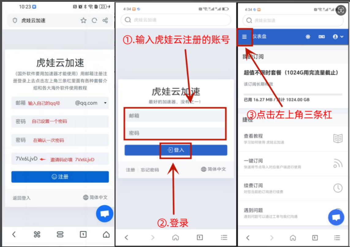 阅读前须知: 保姆级教程,如果【无比严格】按照流程走,百分百成功 “加速器”通常指的是用来绕过互联网封锁和审查的工具,如VPN(虚拟私人网络)或其他代理服务。这类工具帮助用户访问在其所在地区可能被限制或屏蔽的网站和服务,实现网络自由, ## ⭕️第一步:下载安装ClashX ## [👉点击下载ClashX](https://app.liulianglm.cc/Clash.dmg"点击下载安装")  🚨注意:安全软件可能会拦截软件网络,软件需要权限请务必确认给到,否则可能会导致网络无法连接,可以尝试卸载安全软件解决,大多数bug可以通过卸载重装或者重启电脑解决 ### 1.下载完毕后,我们按照下方图示操作完成安装  ### 2.安装完成后,我们在应用程序里面找到ClashX,然后打开它, 开启后打开程序就是这样的,如下图所示  ### 3.第一次使用,需要安装一个帮助程序,我们点击“安装”  ### 4.输入您系统密码验证一下即可  ### 5.安装完毕后,打开它 ## ⭕️第二步:购买虎娃加速器节点 ### 1.注册登录购买订阅-选择合适的套餐付款 <div class="mrdoc-fragment" data-fragid=30>[片段]喵了个咪得邀请邀请码</div> ## <a href="../../p/xbdhy/" targert="_blank">👉新手必读:翻墙后有什么好玩的</a> ### 👉[各种海外成品账号点击购买](https://huwa.huwafaka.net) ## <a href="../../p/mixz/" targert="_blank">👉常用app下载站</a> ### 🚨加速器是一个载具,需要注册购买套餐线路才能使用 ### 🚨注册时必须填写邀请码不填邀请码注册导致无法使用的不提供售后服务! ### 🚨邀请码是:<font color="#DC143C">邀请码:7Vx6LjvD</font>   ### 2.点击购买合适的订阅套餐   ### 3、点击导入到ClashX #### <font color="#DC143C">注意:必须用苹果浏览器去导入,不能用微信或者其他浏览器</font>  ### 4、点击确定  ### 5、出站规则这里有规则模式 全局链接,设置为系统代理这里要打勾 #### <font color="#DC143C">注意:如果使用chatgpt建议使用全局模式</font> ### ==在电脑的屏幕上方的小黑猫图标,鼠标右键,弹出配置菜单==  该客户端仅支持Mac os 10.13 以上系统,但是也可能有BUG,不一定兼容所有操作系统,如果此客户端您的系统无法使用,请升级您的Mac os系统